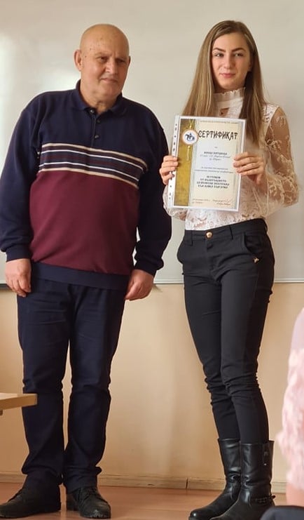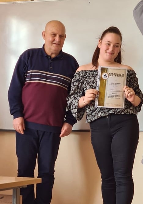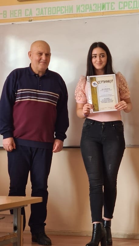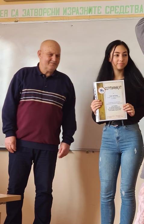 Марина Иванова и Ясмин Ахмед от 11. клас получиха поощрителни грамоти за своите творби.